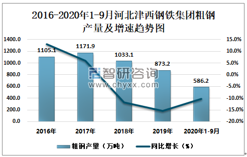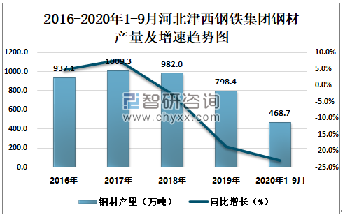 根据冶金工业信息中心数据显示:2020年1-9月河北津西钢铁集团钢材产量为468.7万吨,同比下降22.8%;粗钢产量为586.2万吨,同比下降10.3%;生铁产量为589.9万吨,同比下降5.6%。