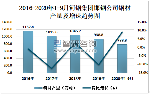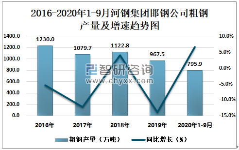 根据冶金工业信息中心数据显示:2020年1-9月河钢集团邯钢公司钢材产量为788.8万吨,同比增长9.2%;粗钢产量为795.9万吨,同比增长6.6%;生铁产量为753.1万吨,同比增长10.6%。