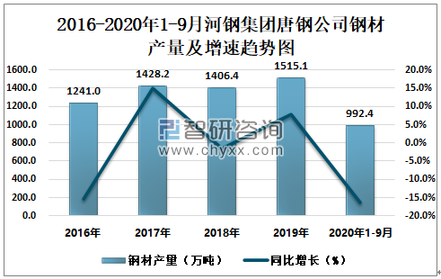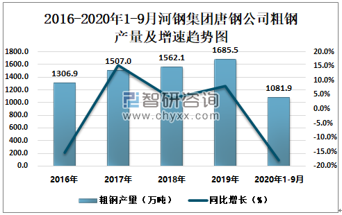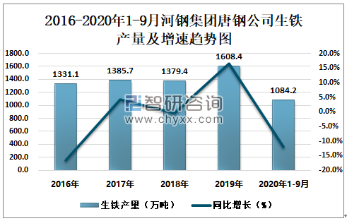 根据冶金工业信息中心数据显示:2020年1-9月河钢集团唐钢公司钢材产量为992.4万吨,同比下降16.4%;粗钢产量为1081.9万吨,同比下降17.9%;生铁产量为1084.2万吨,同比下降12.0%。