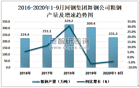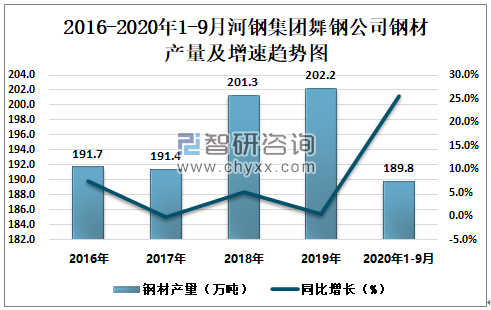 根据冶金工业信息中心数据显示:2020年1-9月河钢集团舞钢公司钢材产量为189.8万吨,同比增长25.6%;粗钢产量为231.3万吨,同比下降3.8%;生铁产量为98.9万吨,同比增长4.5%。