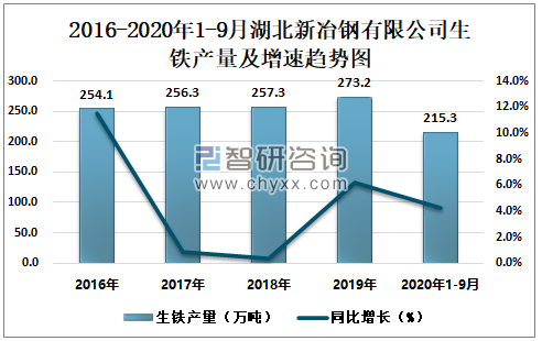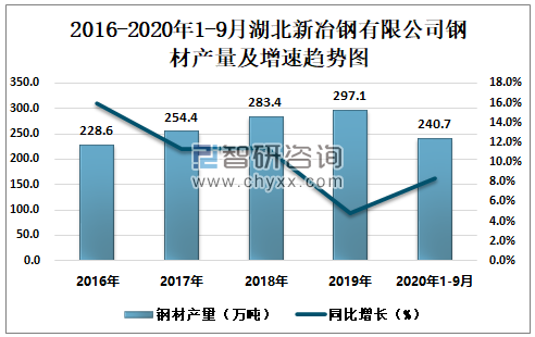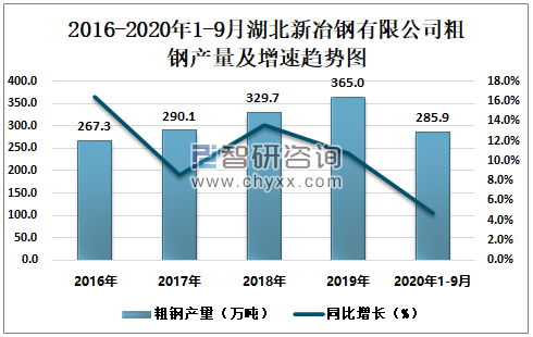 根据冶金工业信息中心数据显示:2020年1-9月湖北新冶钢有限公司钢材产量为240.7万吨,同比增长8.4%;粗钢产量为285.9万吨,同比增长4.7%;生铁产量为215.3万吨,同比增长4.3%。