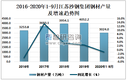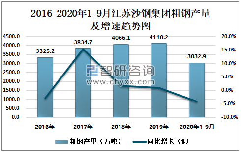 根据冶金工业信息中心数据显示:2020年1-9月江苏沙钢集团钢材产量为3024.0万吨,同比下降1.0%;粗钢产量为3032.9万吨,同比下降4.1%;生铁产量为2536.1万吨,同比下降1.0%。