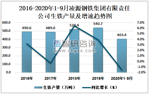 2016-2020年1-9月凌源钢铁集团有限责任公司生铁产量及增速趋势图