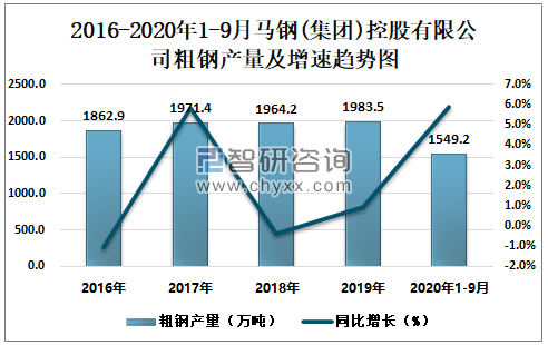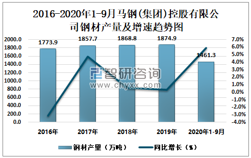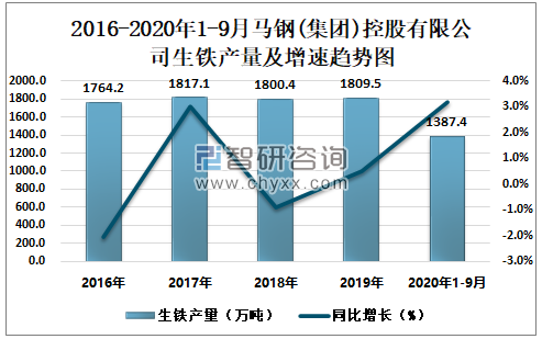 根据冶金工业信息中心数据显示:2020年1-9月马钢(集团)控股有限公司钢材产量为1461.3万吨,同比增长5.9%;粗钢产量为1549.2万吨,同比增长5.9%;生铁产量为1387.4万吨,同比增长3.2%。