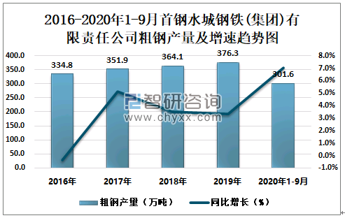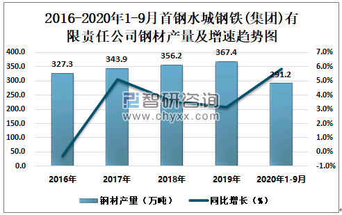 根据冶金工业信息中心数据显示:2020年1-9月首钢水城钢铁(集团)有限责任公司钢材产量为291.2万吨,同比增长5.8%;粗钢产量为301.6万吨,同比增长7.0%;生铁产量为270.9万吨,同比增长5.5%。