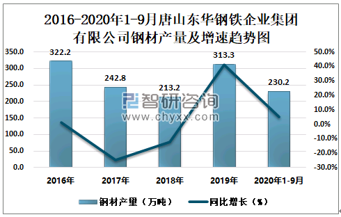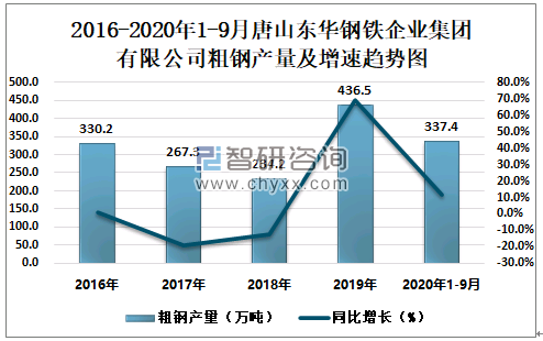 根据冶金工业信息中心数据显示:2020年1-9月唐山东华钢铁企业集团有限公司钢材产量为230.2万吨,同比增长5.1%;粗钢产量为337.4万吨,同比增长11.4%;生铁产量为343.9万吨,同比增长31.7%。
