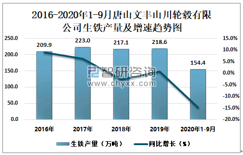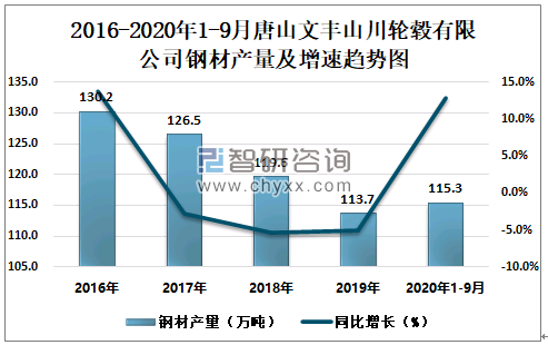 根据冶金工业信息中心数据显示:2020年1-9月唐山文丰山川轮毂有限公司钢材产量为115.3万吨,同比增长12.8%;粗钢产量为169.0万吨,同比下降9.5%;生铁产量为154.4万吨,同比下降14.8%。