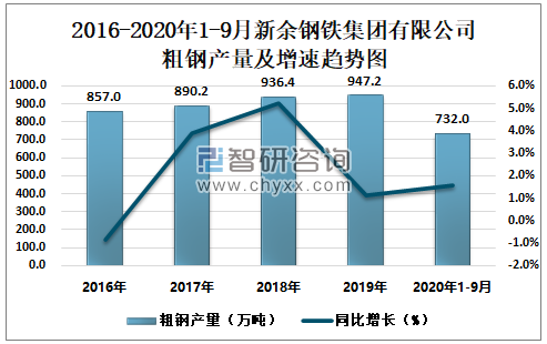 根据冶金工业信息中心数据显示:2020年1-9月新余钢铁集团有限公司钢材产量为669.9万吨,同比增长3.3%;粗钢产量为732.0万吨,同比增长1.6%;生铁产量为671.5万吨,同比下降2.7%。