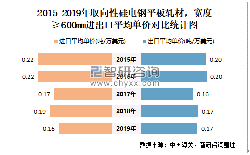 2015-2019年中国取向性硅电钢平板轧材,宽度≥600MM进出口平均单价对比统计图