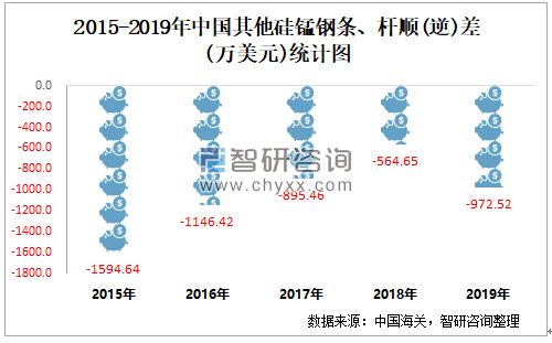 2015-2019年中国其他硅锰钢条、杆顺(逆)差统计图