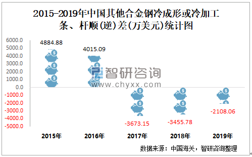 2015-2019年中国其他合金钢冷成形或冷加工条、杆顺(逆)差统计图