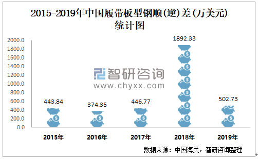 2015-2019年中国履带板型钢顺(逆)差统计图