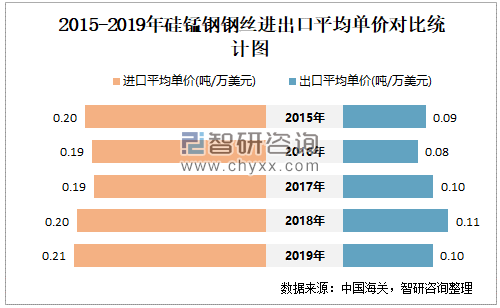 2015-2019年中国硅锰钢钢丝进出口平均单价对比统计图
