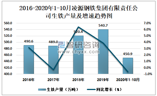 2016-2020年1-10月凌源钢铁集团有限责任公司生铁产量及增速趋势图