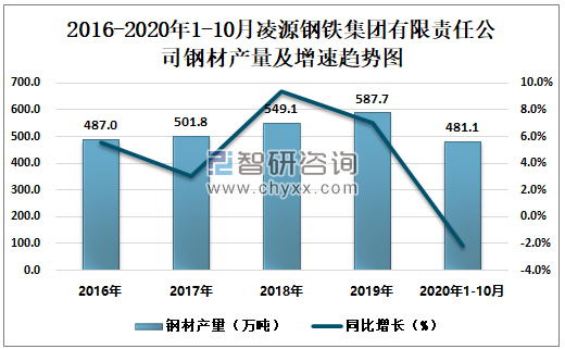 根据冶金工业信息中心数据显示:2020年1-10月凌源钢铁集团有限责任公司钢材产量为481.1万吨,同比下降2.2%;粗钢产量为490.5万吨,同比下降0.7%;生铁产量为450.9万吨,同比下降0.6%。