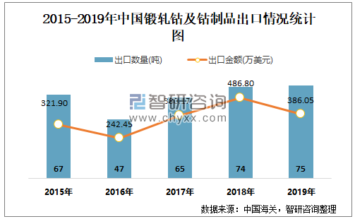 根据中国海关数据显示:2015-2019年中国锻轧钴及钴制品进口数量与进口金额2018年后呈现上升趋势;2015-2019年中国锻轧钴及钴制品出口数量近4年逐年递增。