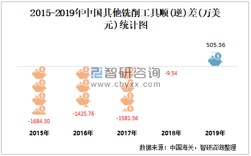 2015-2019年中国其他铣削工具顺(逆)差统计图