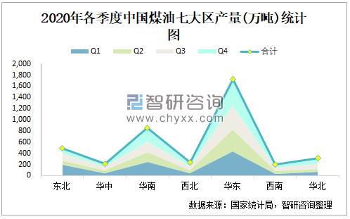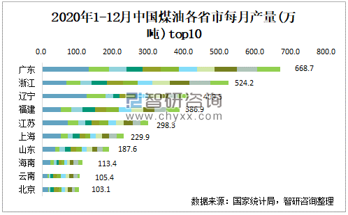根据国家统计局数据显示:2020年各季度中国煤油主要集中在华东、华南、东北地区生产;2020年1-12月中国煤油产量大区分布不均衡,其中华东地区产量最高,特别是浙江省贡献了最多产量;2020年1-12月中国煤油各省市产量呈现梯队式分布,广东、浙江、辽宁等省产量最多。
