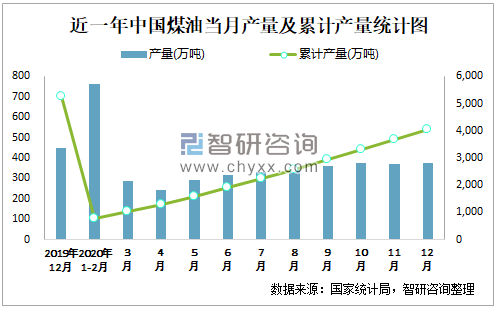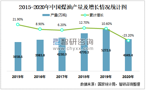 根据国家统计局数据显示:2020年12月中国煤油产量为375万吨,同比下降16.1%;2020年1-12月中国煤油累计产量为4049.4万吨,累计下降23.2%;2015-2020年中国煤油产量2019年达到最高,次年大幅度下滑。