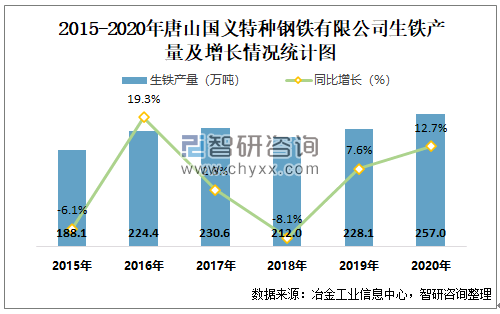 根据冶金工业信息中心数据显示:2020年1-12月唐山国义特种钢铁有限公司钢材产量为263.4万吨,同比增长20.1%;粗钢产量为271.8万吨,同比增长13.37%;生铁产量为257万吨,同比增长12.67%。