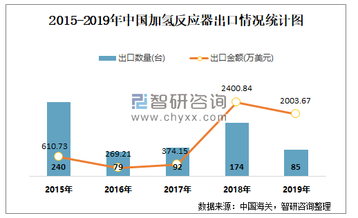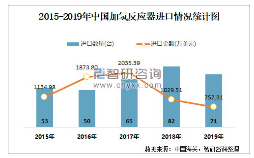 根据中国海关数据显示:2019年1-12月中国加氢反应器进口数量为71台,进口金额为757.31万美元;2019年1-12月加氢反应器出口数量为85台,出口金额为2003.67万美元。