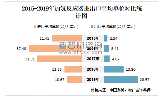 2015-2019年中国加氢反应器进出口平均单价对比统计图