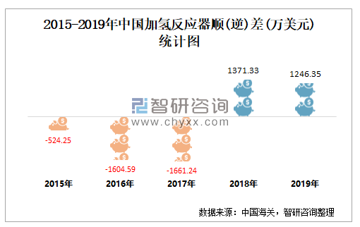 2015-2019年中国加氢反应器顺(逆)差统计图