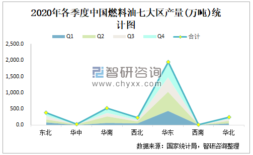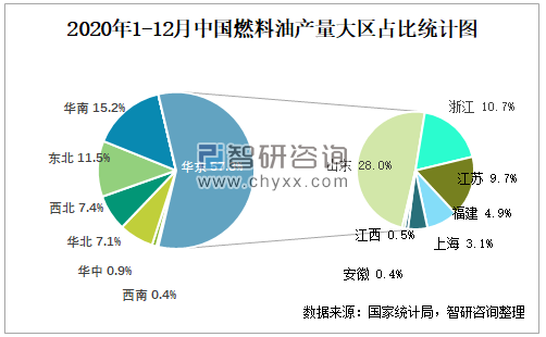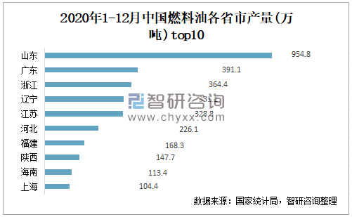 根据国家统计局数据显示:2020年各季度中国燃料油主要集中在华东、华南、东北地区生产;2020年1-12月中国燃料油产量大区分布不均衡,其中华东地区产量最高,特别是山东省贡献了最多产量;2020年1-12月中国燃料油各省市产量top1遥遥领先于其他前9名,山东、广东、浙江等省产量最多。