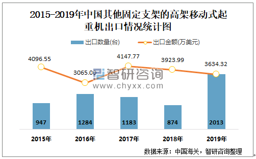 2015-2019年中国其他固定支架的高架移动式起重机出口情况统计图