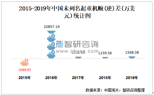 2015-2019年中国未列名起重机顺(逆)差统计图