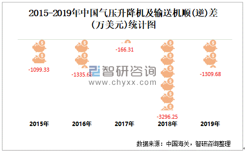 2015-2019年中国气压升降机及输送机顺(逆)差统计图