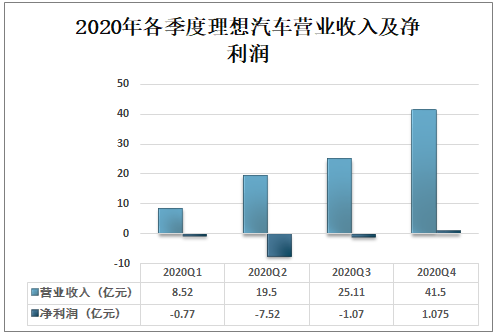 2020年各季度理想汽车营业收入及净利润