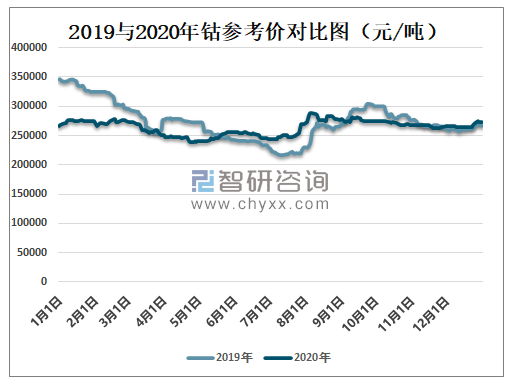 2019与2020年钴参考价对比图(元/吨)