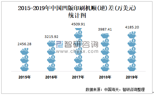 2015-2019年中国凹版印刷机顺(逆)差统计图