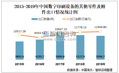2015-2019年中国数字印刷设备的其他零件及附件出口情况统计图