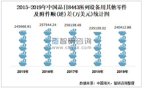 2015-2019年中国品目8443所列设备用其他零件及附件顺(逆)差统计图