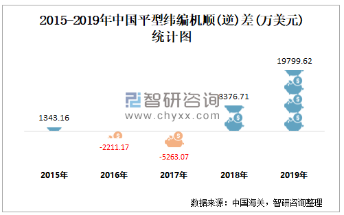 2015-2019年中国平型纬编机顺(逆)差统计图