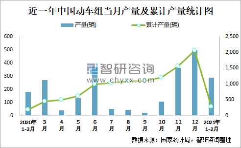 根据国家统计局数据显示:2021年1-2月中国动车组累计产量为286辆,累计增长58.9%;2015-2020年中国动车组产量2015年达到最高,此后总体呈现下降趋势。