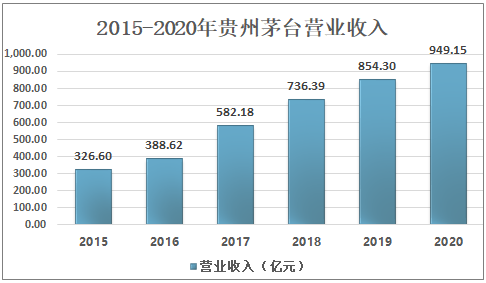 贵州茅台一直是我国大曲酱香型白酒的鼻祖和典范代表,2020年贵州茅台营业收入为949.15亿元,较2018年的854.30亿元同比增长11.1%。