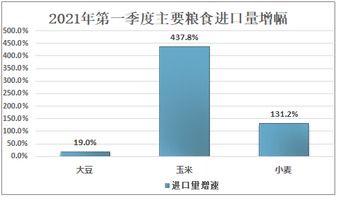 2021年第一季度主要粮食进口量增幅