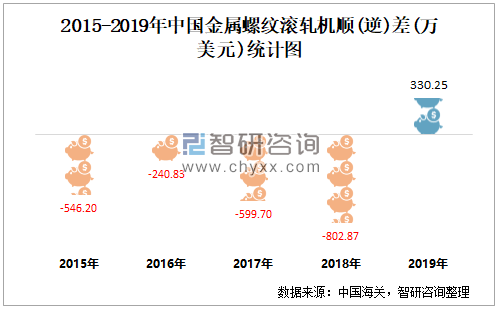 2015-2019年中国金属螺纹滚轧机顺(逆)差统计图