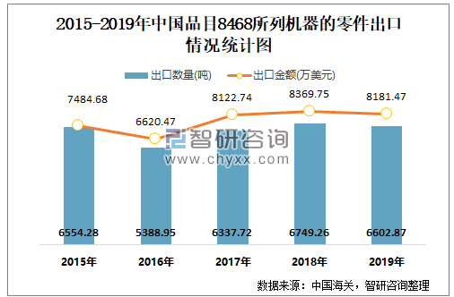 2015-2019年中国品目8468所列机器的零件出口情况统计图