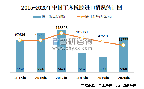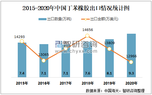 近一年中国丁苯橡胶进出口数量、金额统计表