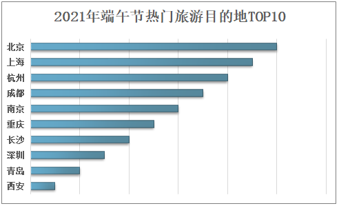端午节临近,各在线旅游平台纷纷披露预订数据。携程披露的数据显示,通过携程预订的旅游订单量同比增长135%;去哪儿数据显示,去哪儿平台上端午出行火车票的预订量同比增长近一倍;飞猪数据显示,“66机票盲盒”带动端午期间飞机出行人次同比涨超260%,酒店预订量同比大涨超800%。携程数据显示:2021年年端午节热门旅游目的地TOP10依次为北京、上海、杭州、成都、南京、重庆、长沙、深圳、青岛、西安。