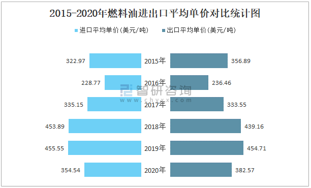 根据中国石油和化学工业联合会数据统计可知:2015-2020年中国燃料油出口金额总体小于进口金额;2015-2020年中国燃料油进口平均单价相对平稳,涨跌幅度较小,出口平均单价高于进口平均高价。