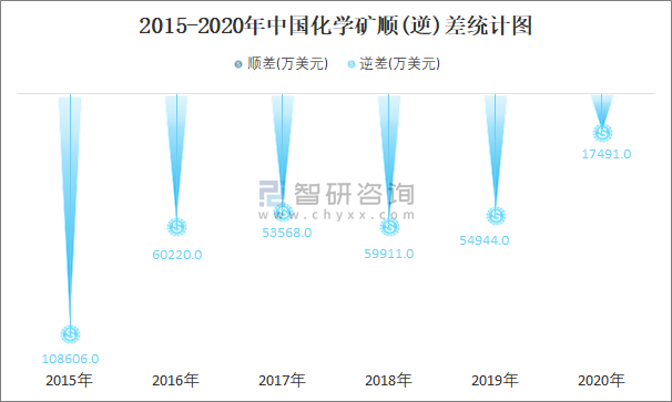 2015-2020年中国化学矿顺(逆)差统计图