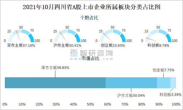 2021年10月四川省A股上市企业所属板块分类占比图